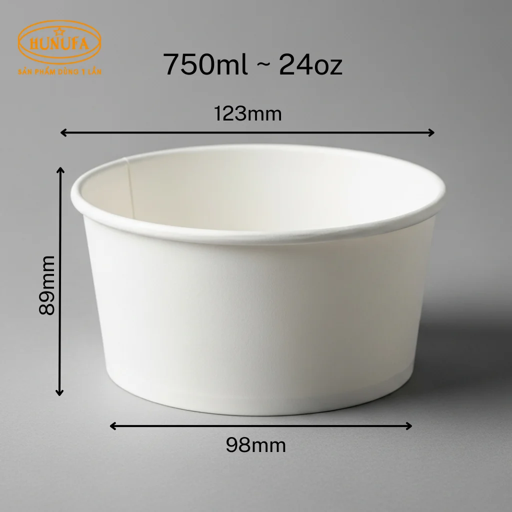 Tô giấy 750ml / Bát giấy 750ml 24oz: Chống thấm, chịu nhiệt tốt, đựng được thực phẩm có nước