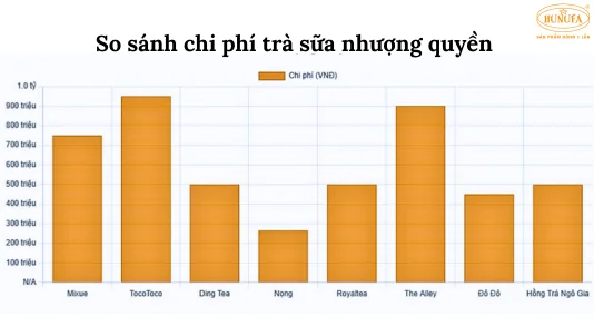 Các thương hiệu như TocoToco có mức phí từ 200 – 500 triệu, The Alley dao động từ 500 triệu đến 1 tỷ, trong khi Gong Cha có thể lên tới 1 – 1.5 tỷ đồng. Nói chung, thương hiệu càng nổi tiếng, mạng lưới càng rộng lớn thì phí nhượng quyền sẽ càng cao.