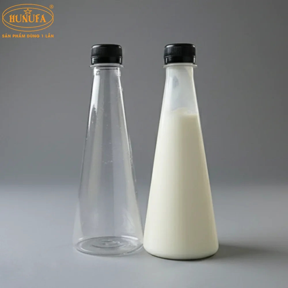 Nếu bạn đang tìm kiếm nơi bán chai nhựa tam giác đa dạng kích thước, giá sỉ uy tín, Hunufa chính là địa chỉ đáng tin cậy. Chúng tôi cung cấp đa dạng mẫu mã – từ chai nhựa tròn, chai vuông, đến chai nhựa hình tháp tam giác cao cấp, đáp ứng mọi nhu cầu sử dụng trong ngành F&B, trà sữa, cafe, nước ép và thực phẩm.
