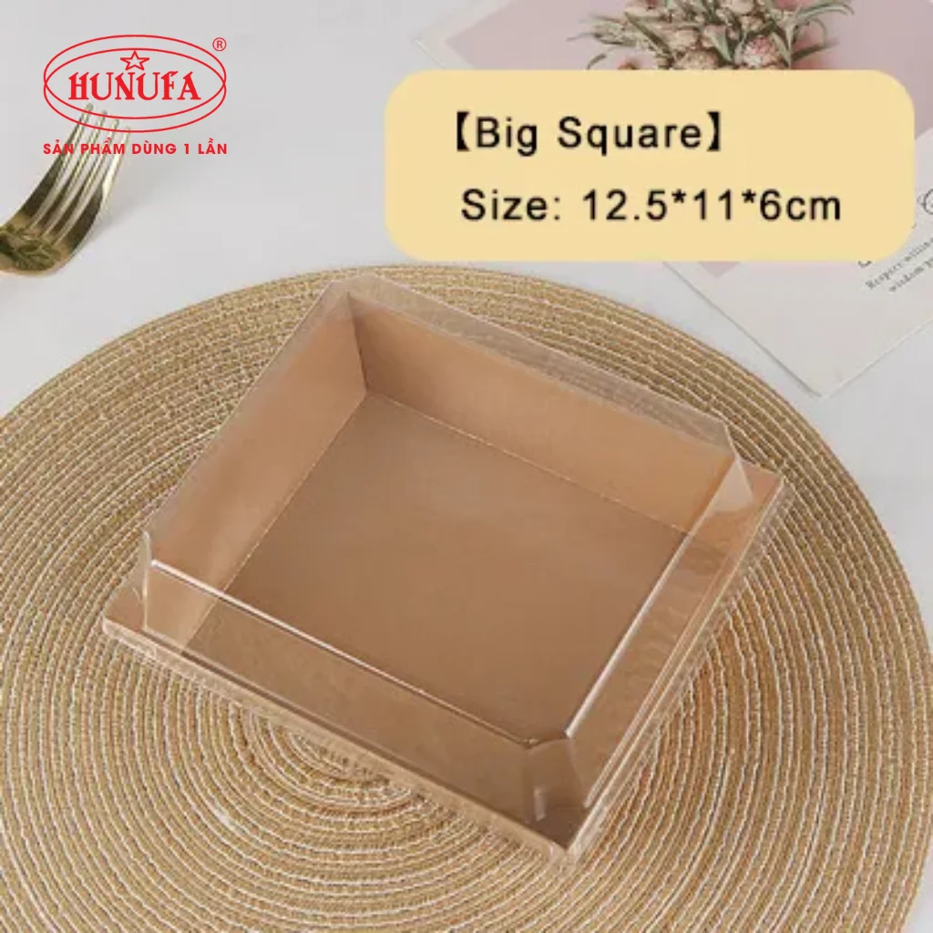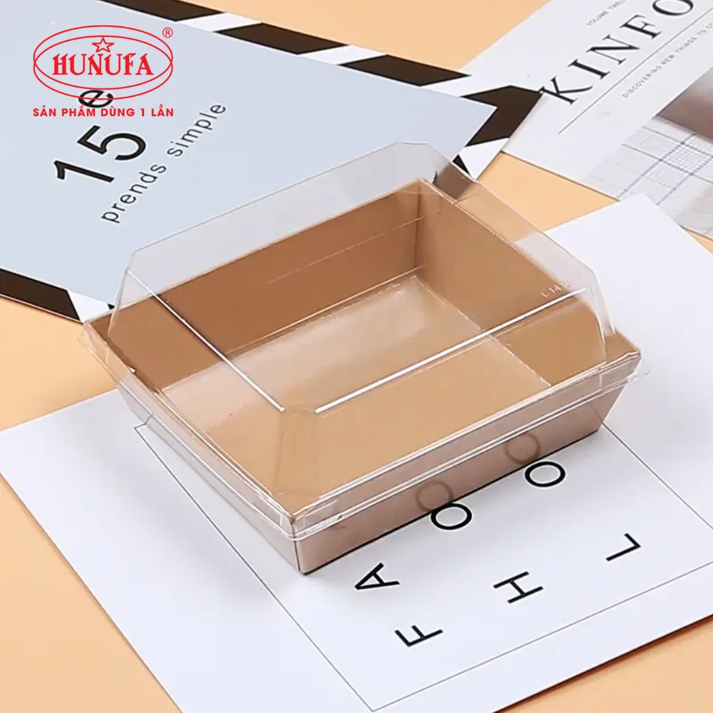 Hộp giấy vuông kraft nắp trong PET là lựa chọn hoàn hảo cho các cửa hàng, quán ăn nhanh, hay tiệm bánh muốn nâng cao chất lượng phục vụ và bảo vệ môi trường.