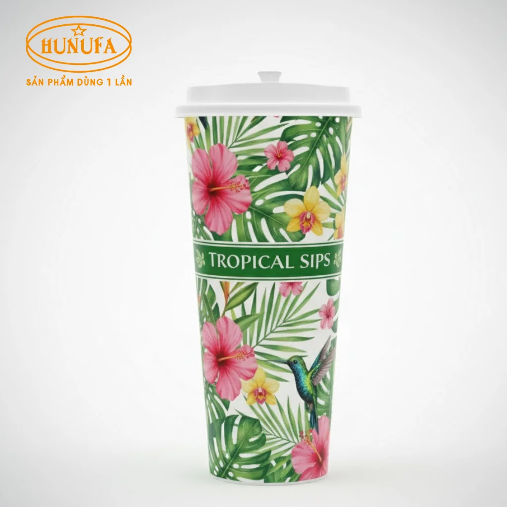 • Tính thẩm mỹ cao: Ly nhựa dùng 1 lần được in full nền mang đến cảm giác chuyên nghiệp, cao cấp hơn hẳn so với các loại ly in đơn giản.