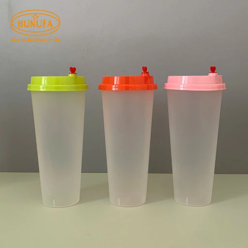 Ly nhựa nhám thường đi kèm với nắp tim, giúp tăng tính thẩm mỹ và tiện lợi khi sử dụng. Với kiểu dáng hiện đại, nắp tim không chỉ giúp giữ kín đồ uống, hạn chế đổ tràn mà còn tạo điểm nhấn thu hút cho sản phẩm. Đặc biệt, phần tim nhỏ trên nắp có thể mở ra dễ dàng để uống trực tiếp, mang đến trải nghiệm tiện lợi cho người dùng.