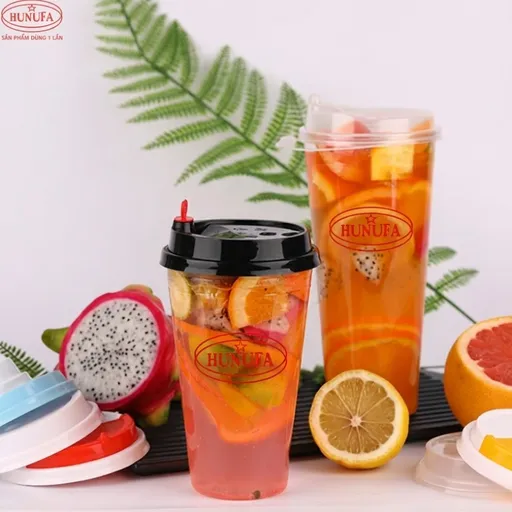 Chọn loại ly nhựa (PET hoặc PP chất lượng cao): Đặc điểm của ly Hunufa là độ trong suốt tuyệt đối. Khi đựng các loại nước có màu đẹp như dưa hấu, cam, rau má, màu sắc sẽ hiện lên trung thực, không bị mờ đục như ly nhựa tái chế.