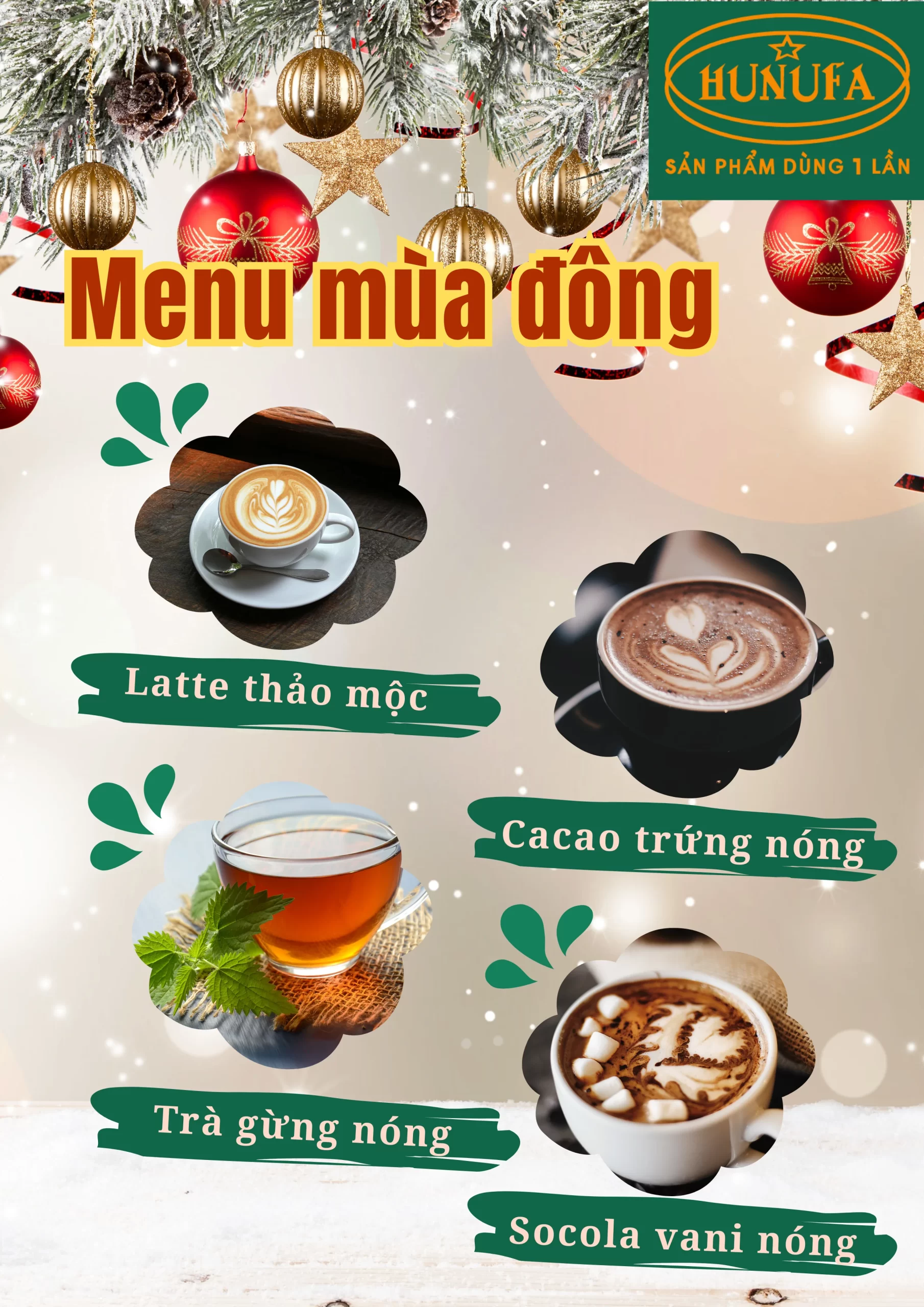Menu đồ uống cho quán cafe theo concept lễ hội mùa đông