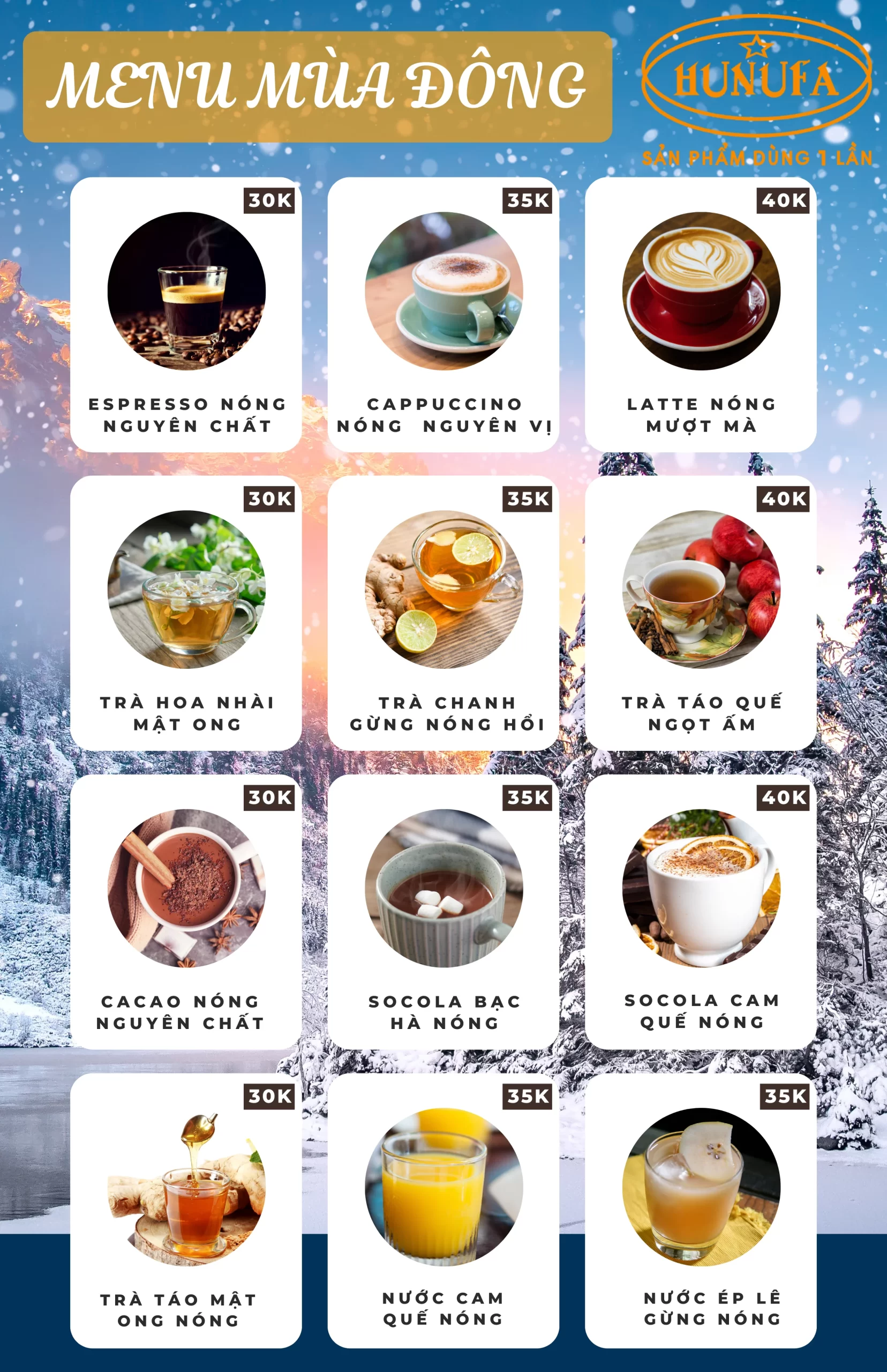 Menu đồ uống mùa đông cho quán cafe phong cách trẻ trung