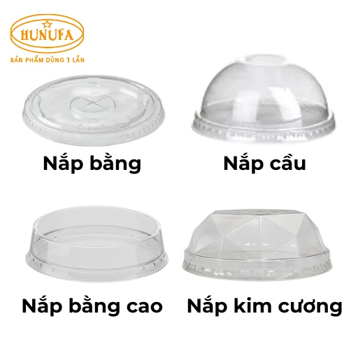 - Đa dạng thiết kế: Nắp PET được sản xuất với nhiều kiểu dáng như nắp PET cầu, nắp PET bằng, nắp kim cương phù hợp với nhiều loại ly và nhu cầu sử dụng khác nhau.