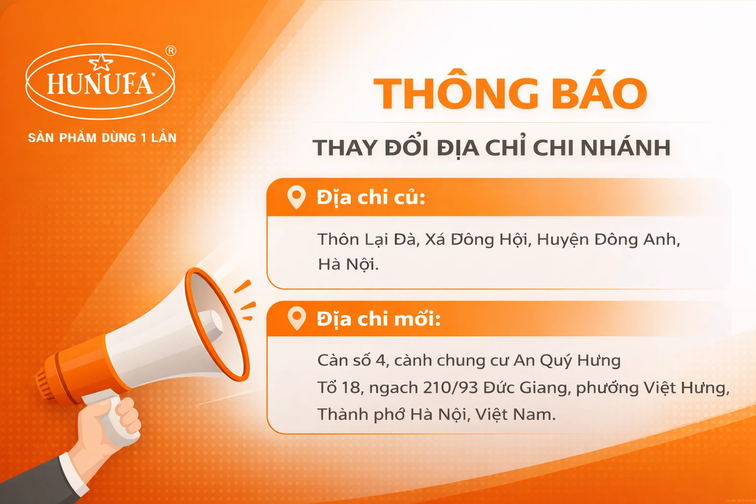 Kể từ thời điểm trên, mọi giao dịch, thư từ, hàng hóa liên quan đến Chi nhánh Hà Nội – Công ty TNHH Hunufa, Quý Khách hàng/Đối tác vui lòng gửi về địa chỉ mới.