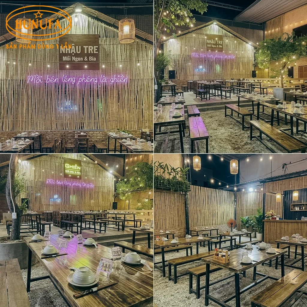 Hunufa mang đến giải pháp đồ dùng một lần cao cấp (ly nhựa, ống hút, chén đựng nước chấm, đũa dùng 1 lần…) giúp chủ quán giải quyết triệt để vấn đề này. Không chỉ tiện lợi và đảm bảo vệ sinh, các sản phẩm của Hunufa còn được thiết kế với thẩm mỹ cao, hỗ trợ in ấn logo sắc nét. Đây chính là cách “trang trí” thông minh giúp đồng bộ nhận diện thương hiệu, tạo ấn tượng chuyên nghiệp và thân thiện với môi trường trong mắt thực khách ngay từ khi món ăn được dọn ra.