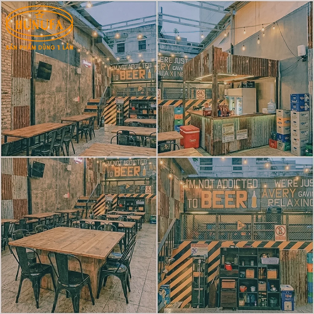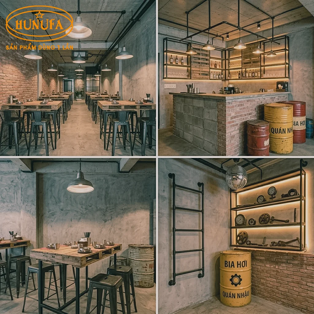 • Trang trí quán nhậu nhỏ phong cách công nghiệp
