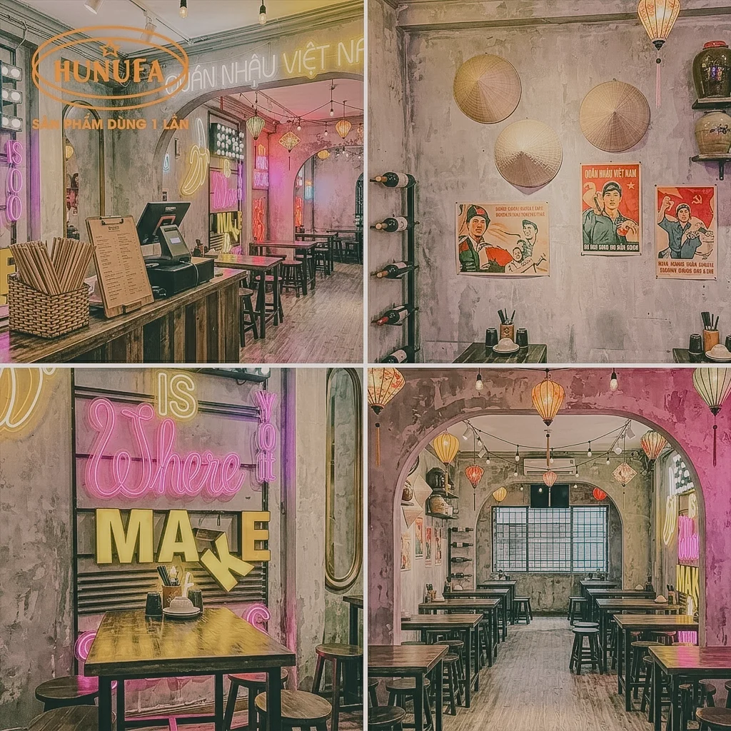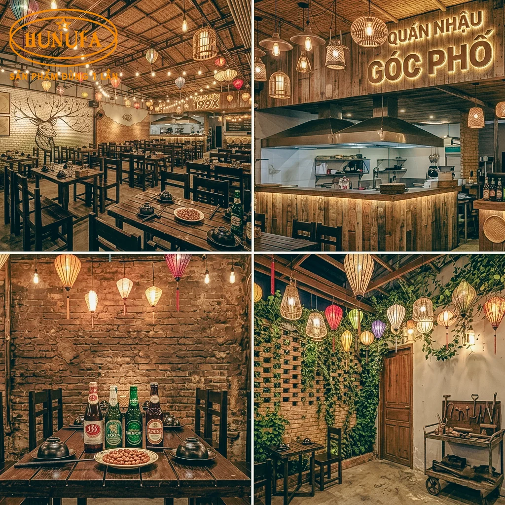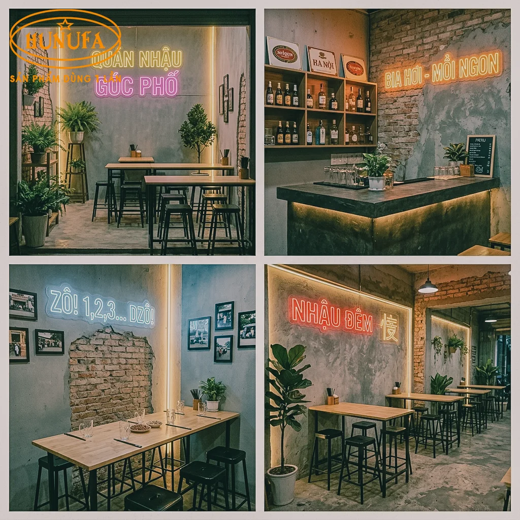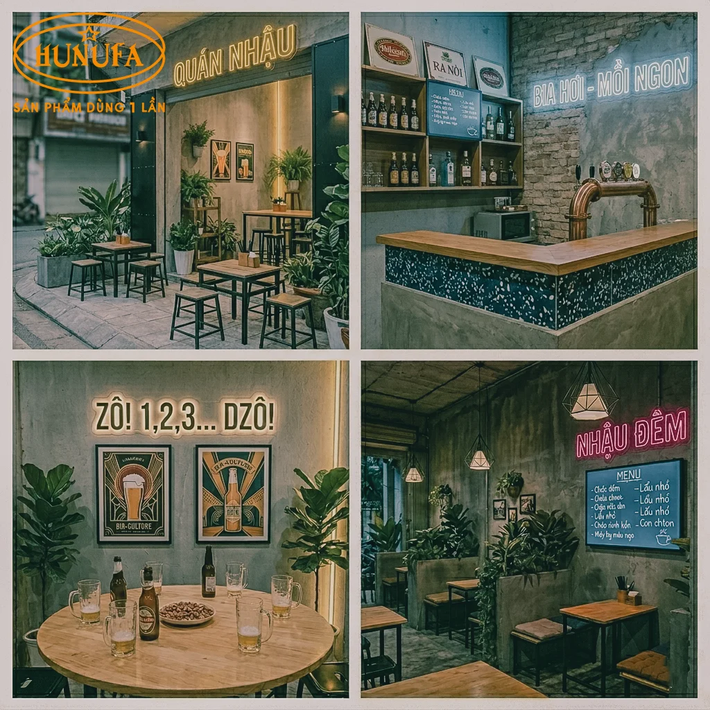 Kinh doanh quán nhậu nhỏ những năm gần đây đúng kiểu “hái ra tiền” nhờ chi phí vận hành thấp, thu hồi vốn nhanh, nhưng khó khăn lớn nhất với các chủ quán là làm sao để trang trí quán nhậu nhỏ vừa đẹp mắt, vừa tối ưu không gian quán, lại có được màu sắc riêng để nổi bật giữa những quán nhậu khác. Trong bài viết này, Hunufa sẽ chia sẻ hơn 50+ ý tưởng trang trí quán nhậu nhỏ với nhiều phong cách khác nhau, giúp bạn biến quán nhậu của mình thành phiên bản “nhỏ nhưng có võ”.
