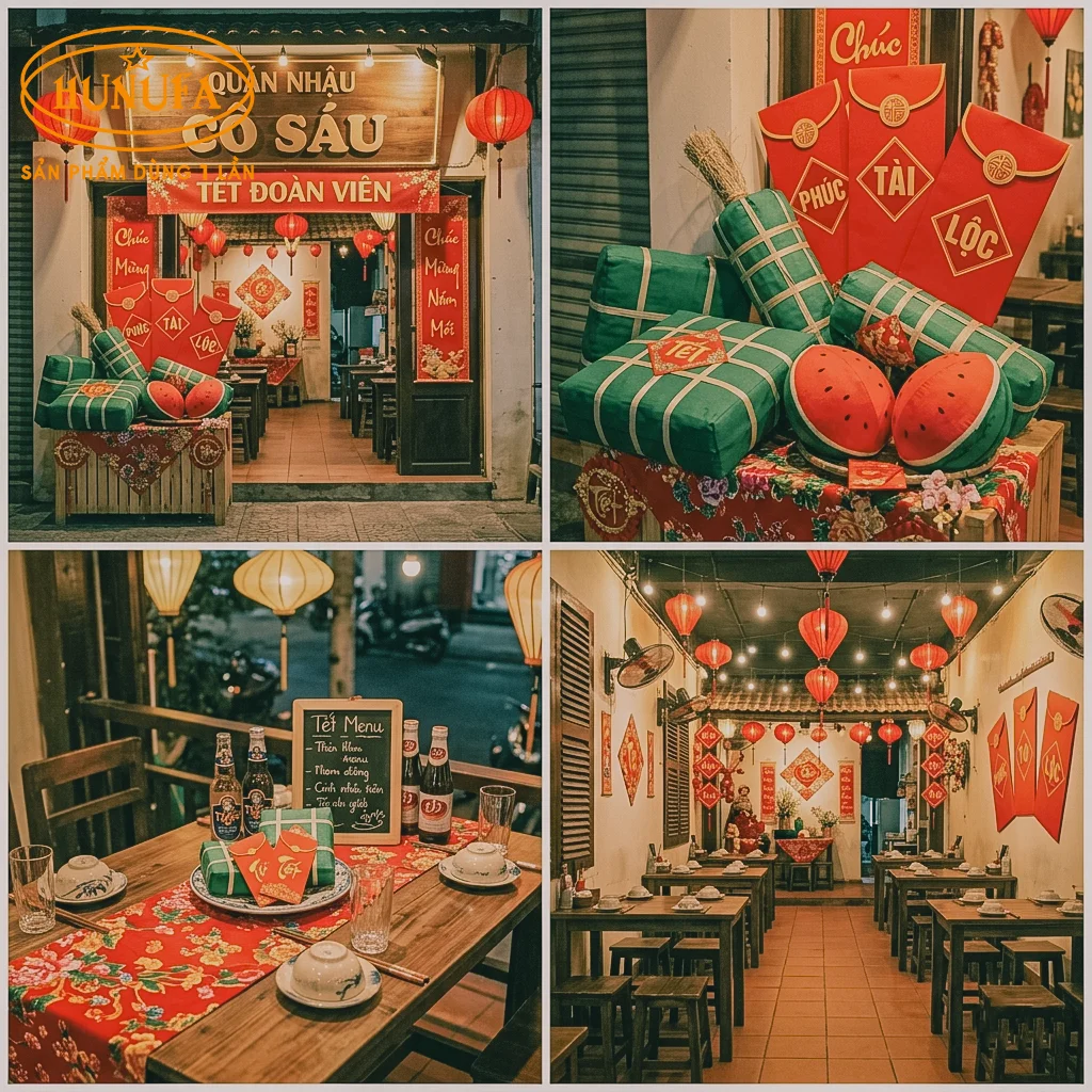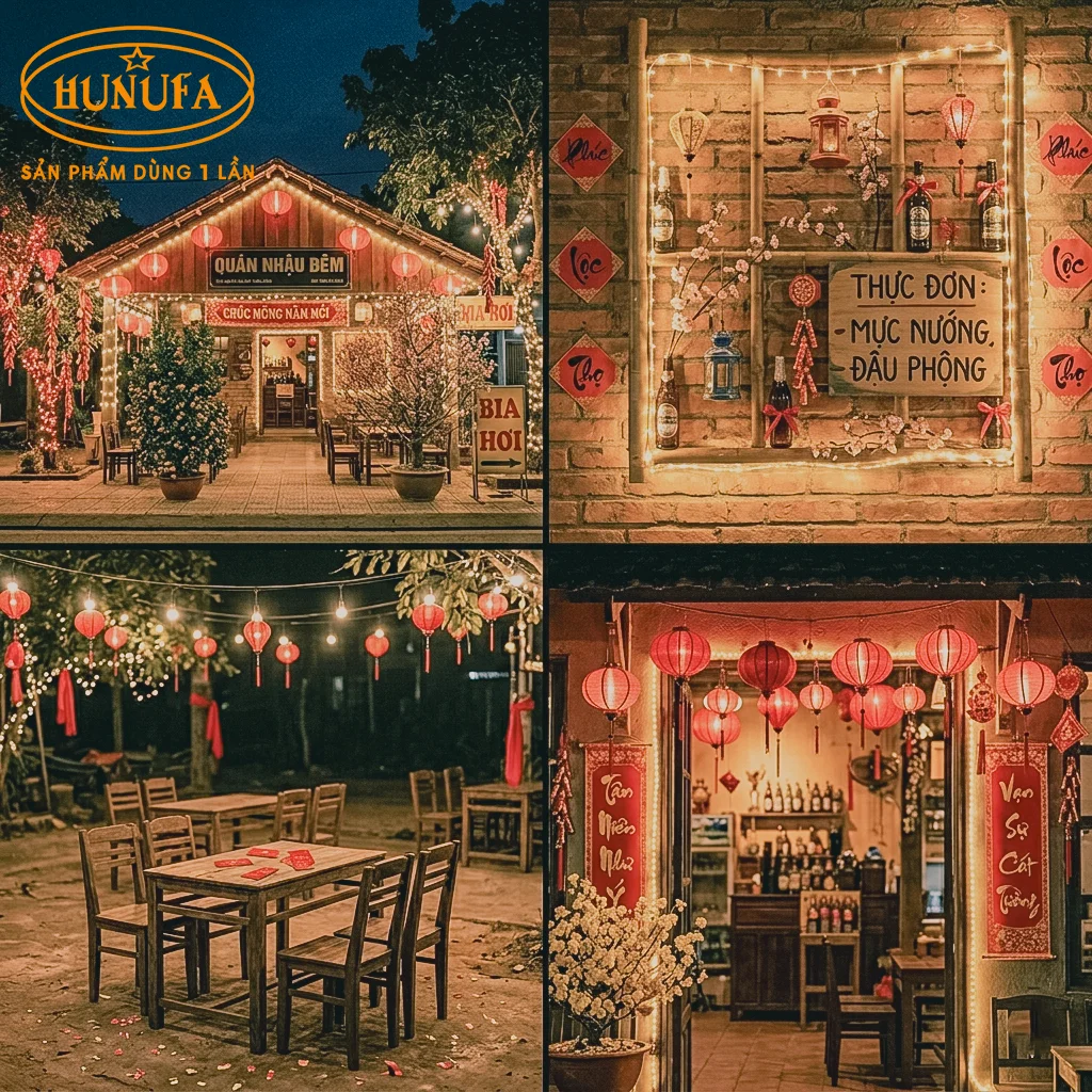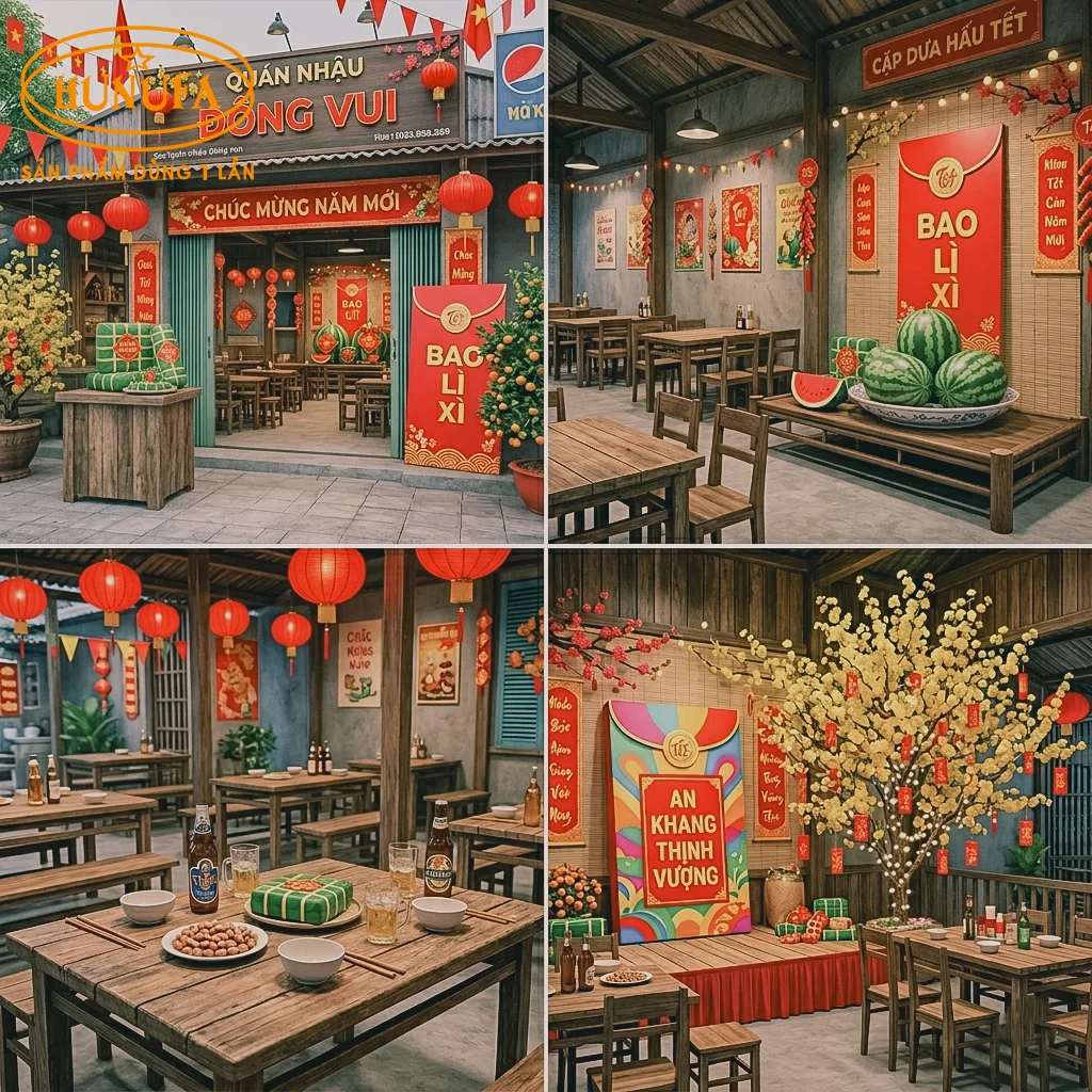 Tết Nguyên Đán là cơ hội để các quán nhậu bứt phá doanh thu nhờ nhu cầu tụ họp tăng cao. Tuy nhiên, không cần ngân sách quá lớn, bạn vẫn có thể tạo ra không gian quán nhậu ấn tượng để giữ chân thực khách. Trong bài viết này, Hunufa sẽ tổng hợp 60+ ý tưởng trang trí Tết quán nhậu đơn giản, dễ thực hiện và tiết kiệm chi phí, giúp quán bạn luôn đông khách, khai xuân đại cát.